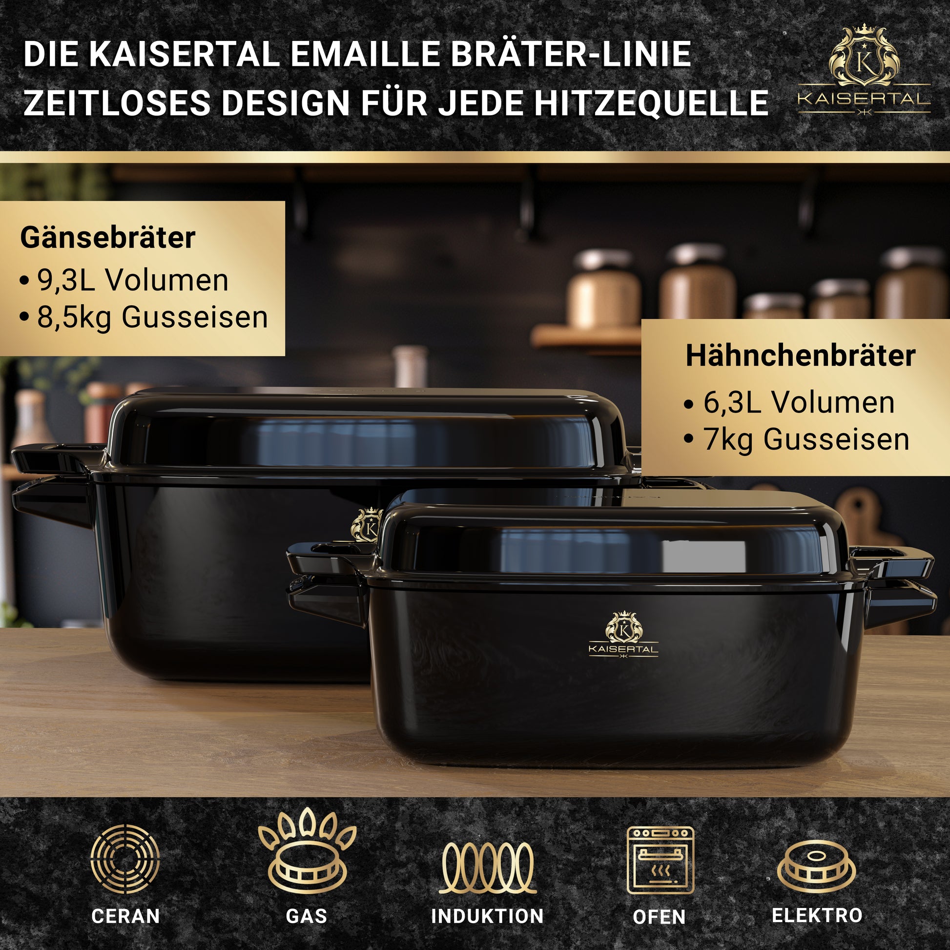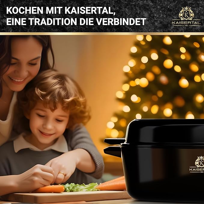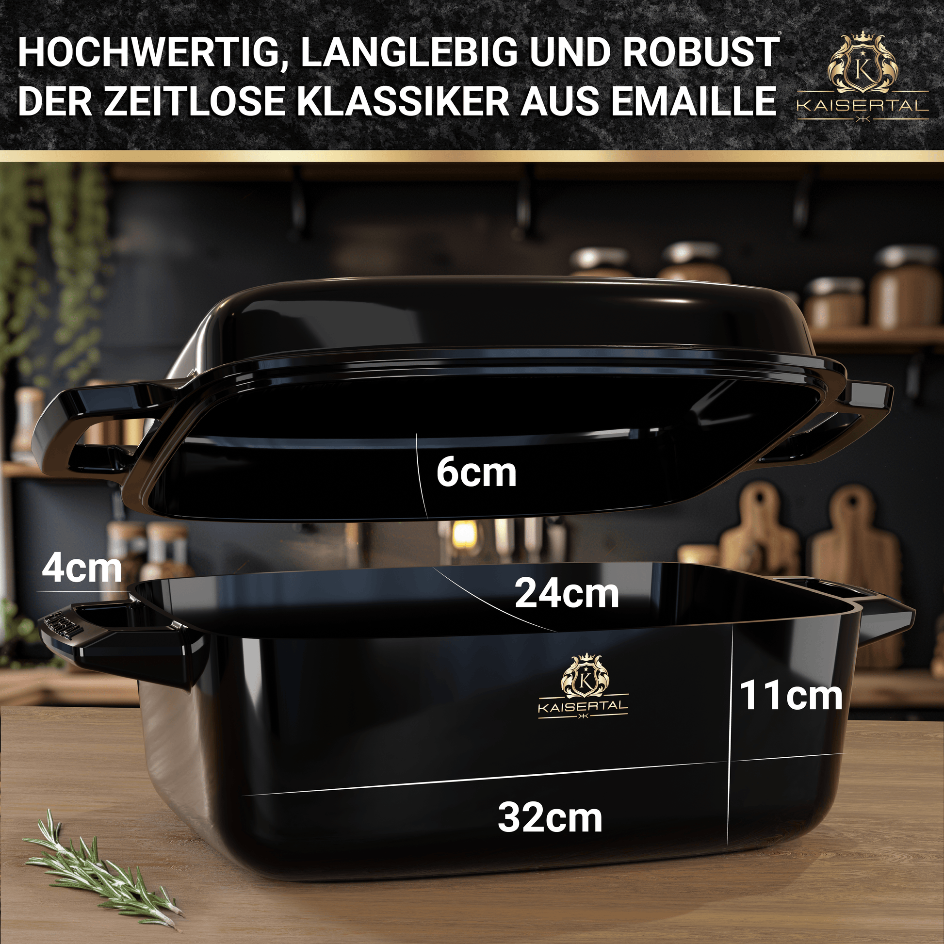KAISERTAL Gusseisen Bräter 32 cm mit Deckel (10L) - Emailliert/Eingebrannt