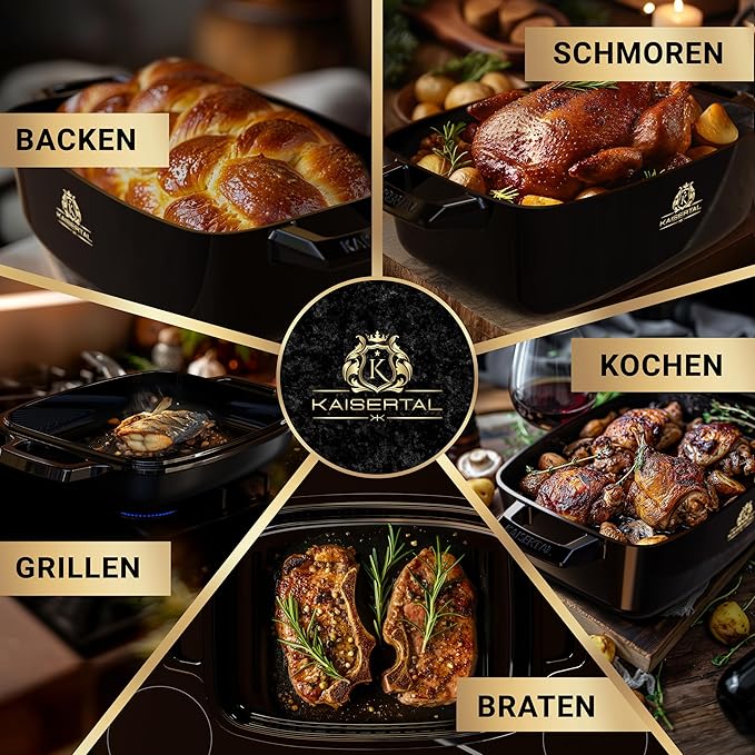 Der KAISERTAL Gusseisentopf ist mehr als nur ein Topf - er ist dein neues Lieblingsstück für unvergessliche Geschmackserlebnisse! Mit dem großzügigen Schmortopf, bist du für jedes kulinarische Abenteuer gerüstet. Ob saftige Braten, zarte Schmorgerichte oder knusprige Pfannengerichte - dieser Topf macht alles möglich.